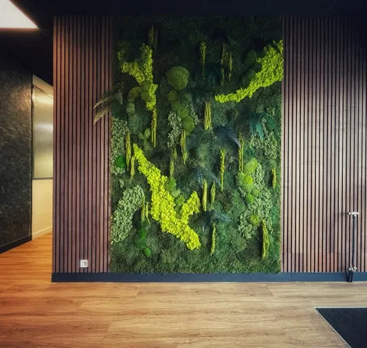 • Confort acoustique : Les végétaux stabilisés réduisent jusqu’à 50 % des nuisances sonores, améliorant le bien-être des clients et collaborateurs.